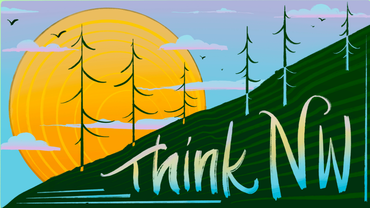 Every month, the Pacific Northwest’s next generation of great artists puts their spin on the ThinkNW logo. Artist, curator, writer and registered member of Oregon’s Grand Ronde Confederated Steph Littlebird explores textures and colors for a unique interpretation.