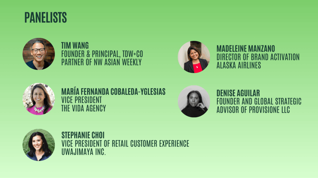 Today, Seattle and the Pacific Northwest continues to be a cultural hub that drives innovation, creativity and bold decision-making that inspires business growth. As a global gateway to the Pacific, our food, fashion, sports, and home-grown businesses (both local and global), are ways in which we express our region’s rich culture and diversity. Hear from our marketing leaders based in the Pacific Northwest including TDW+CO, Vida Agency, Uwajimaya, Alaska Airlines, and Provisione LLC on how the region has uniquely shaped their companies, and why engaging with diverse communities and perspectives has become a business imperative.