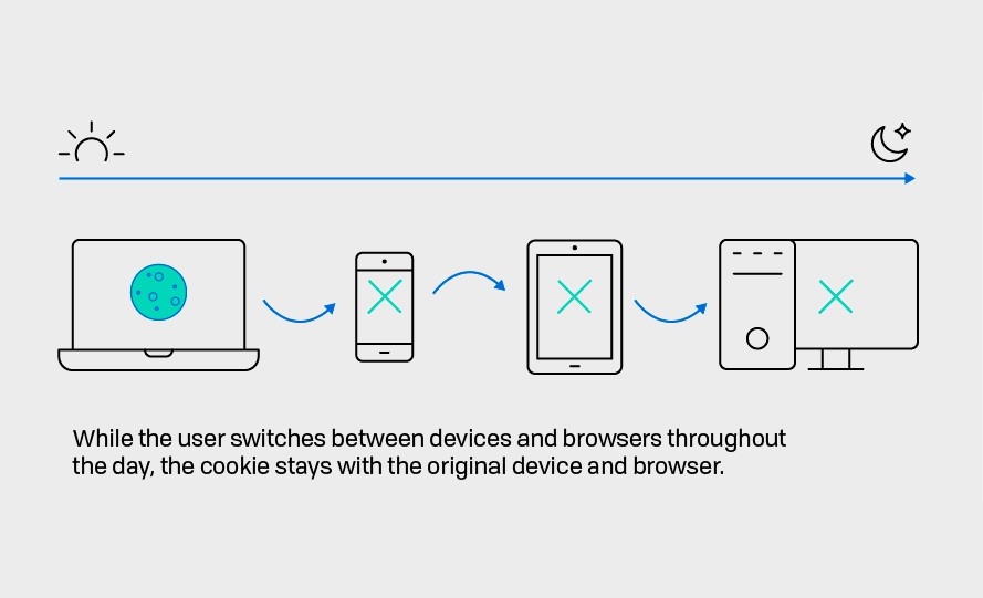 Cookies reside on a single device or browser, yet users jump around from device to device each day and often use more than one browser.